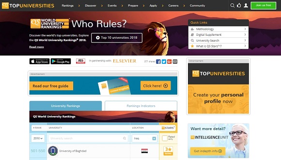 University of Baghdad wins the first place in Iraq and 501 rank globally in QS World University Rankings