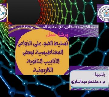 Virtual workshop on the magnetic properties of some carbon nanotubes at the college of scienceEnglish Admin08/06/2021The department of chemistry, in cooperation with the continuing education unit and Ibn Sina unit for e-learning at the college ...