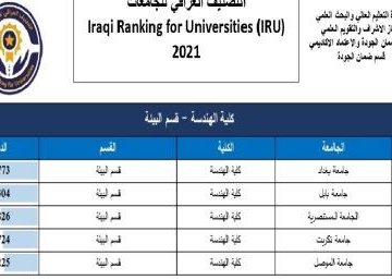 The department of environmental engineering gets the first place in the Iraqi Ranking for Universities 2021English Admin17/03/2022For the fourth time respectively, the department of environmental engineering at the University of Baghdad won the first place locally ...