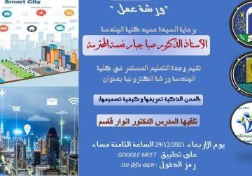 Workshop on the design of smart cities at the college of engineeringEnglish Admin19/01/2022The continuing education unit at the college of engineering held an online workshop entitled “Smart cities and how to design ...