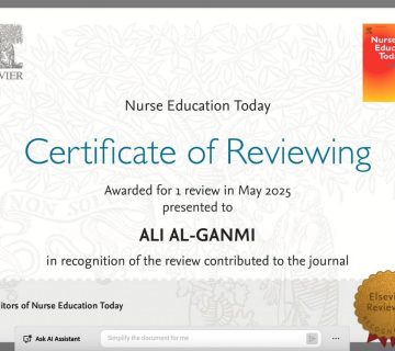 Faculty Member from the College of Nursing Selected as Peer Reviewer for “Patient Education and Counseling” Journal