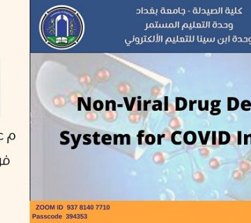 Online workshop on non-viral drug delivery system for Covid-19 at the college of pharmacyEnglish Admin12/10/2021The college of pharmacy at the University of Baghdad has organized recently an electronic workshop entitled “Non-viral drug delivery system ...
