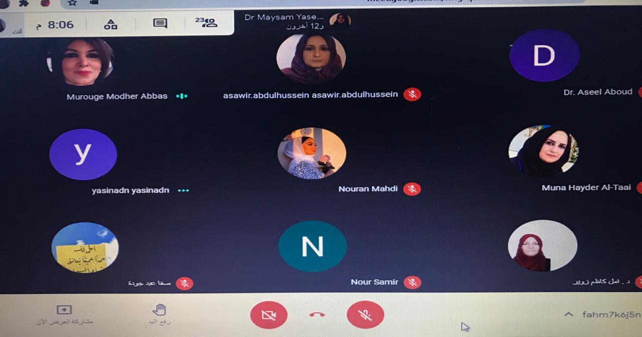 The department of sociology at the college of education for women has organized a virtual scientific symposium entitled (Social work in crises: challenges and opportunities) in the presence of a number of faculty members via Google Meet service with the aim to highlight the problems and crises faced by communities and the role of social work in addressing them. The professors talked about the need for developing and activating the role of social specialists in the face of common issues, as well as to discuss contemporary social variables in conjunction with the Coronavirus pandemic and its vivid repercussions that affected everyone and to find solutions that contribute to accepting the current reality and coexist with the external environmental factors we encounter.