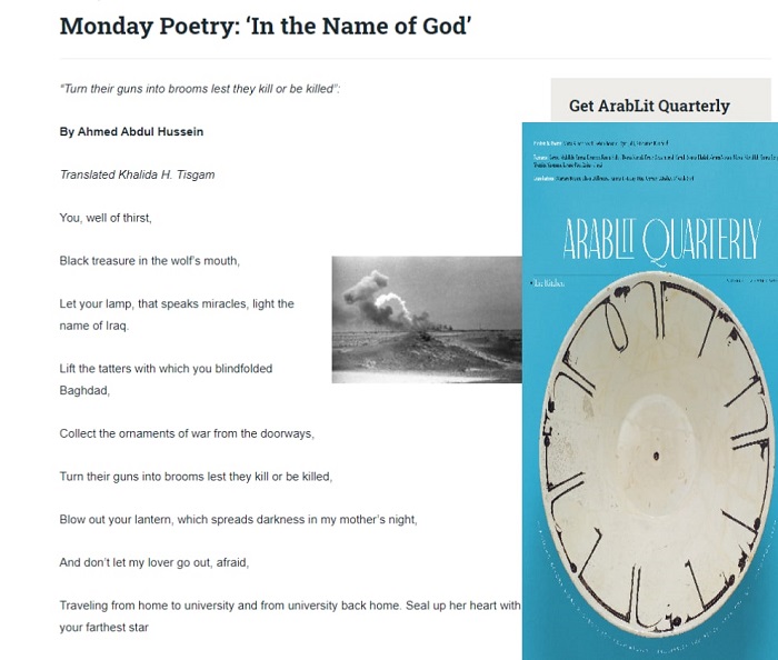 Assist. Prof. Assist. Prof. Khalida Hamid Tisgam, a lecturer from the department of English language at the college of education for women has translated and published a long poetic text in ArabLit Quarterly issued in London and emerged in 2018 from the community around the ArabLit website and Bulaq podcast. It aims to bring out beautiful literary translations from Arabic, fresh work by Arab artists, and also new forms of literary criticism and other Arabic literary masterpieces, including poems, plays, short stories, novels of Naguib Mahfouz online and in paper form so as to introduce the Arab culture and civilization to foreign readers.