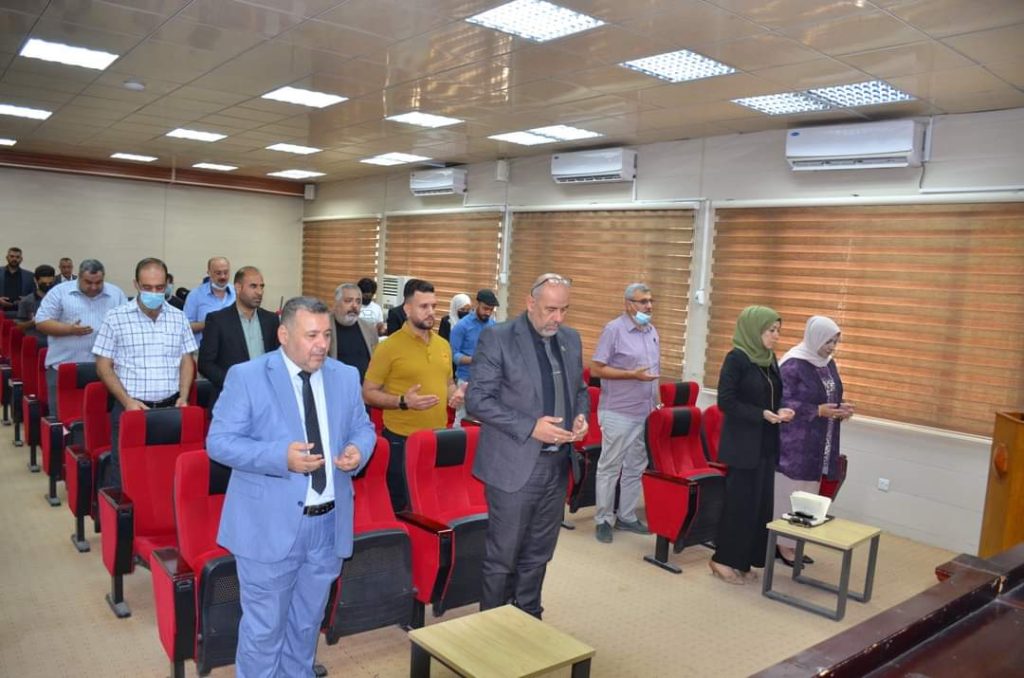The department of remote sensing and geographic information systems at the college of science has organized recently a memorial service for the departure of Prof. Dr. Ghaida Sabeeh Hadi, in the presence of the assistant rector for administrative affairs Prof. Dr. Sarmad Fouad, the dean of the college, Prof. Dr. Abdul Kareem Abdul Razzaq and his assistant for scientific affairs in addition to a number of faculty members at the department.