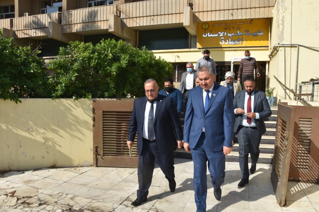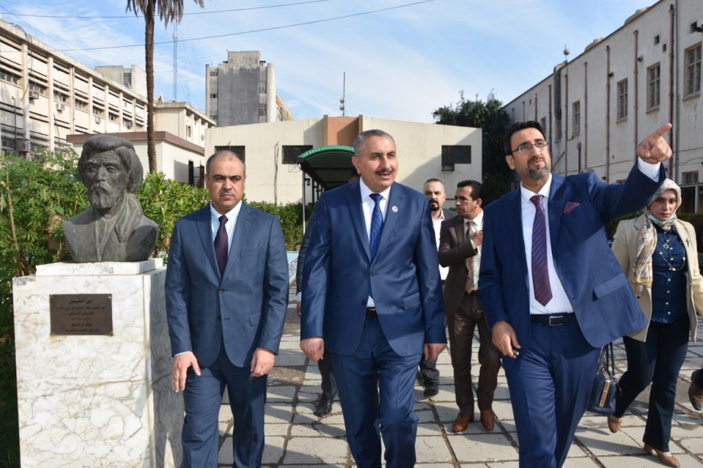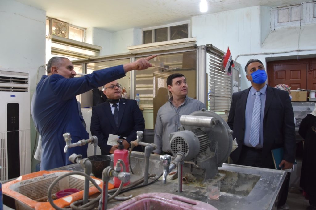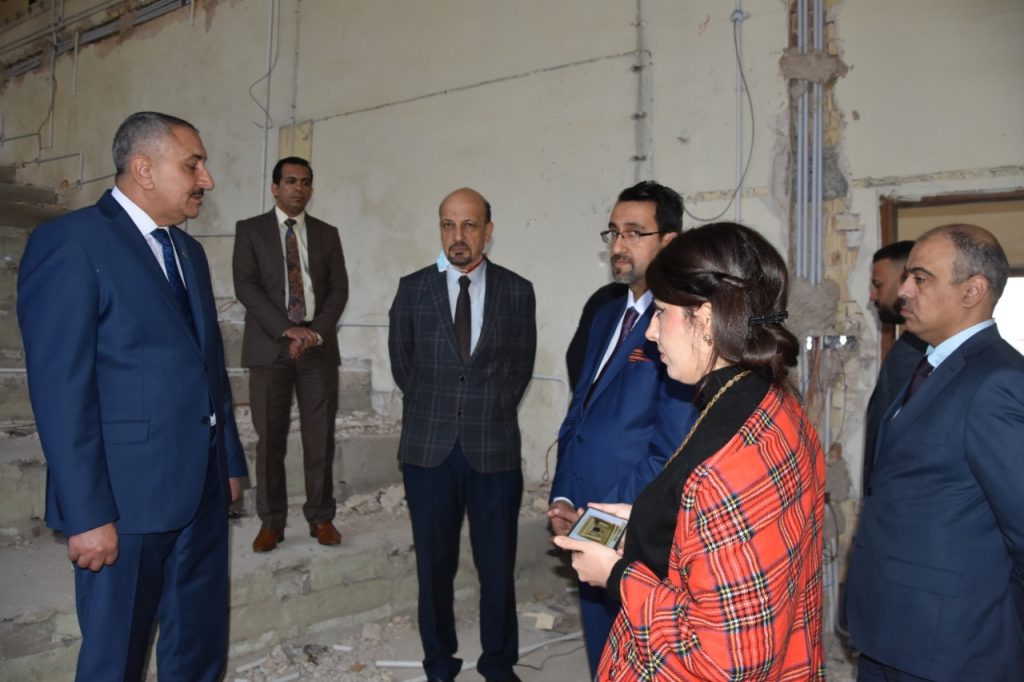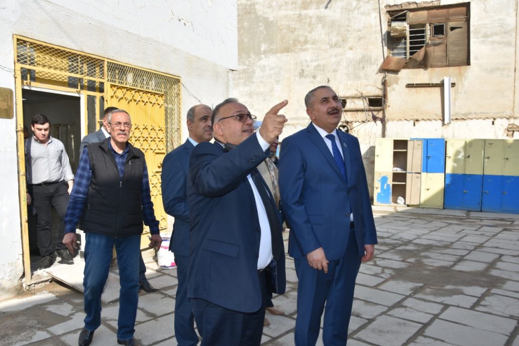 Prof. Dr. Munir Hamid al-Saadi, rector of the University of Baghdad has visited the colleges of medicine to follow-up the reconstruction campaigns undergoing there and was received by the dean of the college, Prof. Dr. Ali Kamel al-Shalji, where they inspected the halls, laboratories and other facilities to keep abreast of the projects under way. Dr. Munir al-Saadi stressed the need to exert all efforts to provide the appropriate study environment for our dear students which may reflect positively on their scientific and academic status through establishing integrated classrooms and labs equipped with the latest medical devices. In the same context, the rector visited the college of dentistry and was received by the dean of the college, Prof. Dr. Raghad Abdul Razzaq al-Hashimi who accompanied him in his tour and gave an overview about the accomplished projects related to the rehabilitation and maintenance of the college’s infrastructure in accordance with a set of prioritized quality standards.