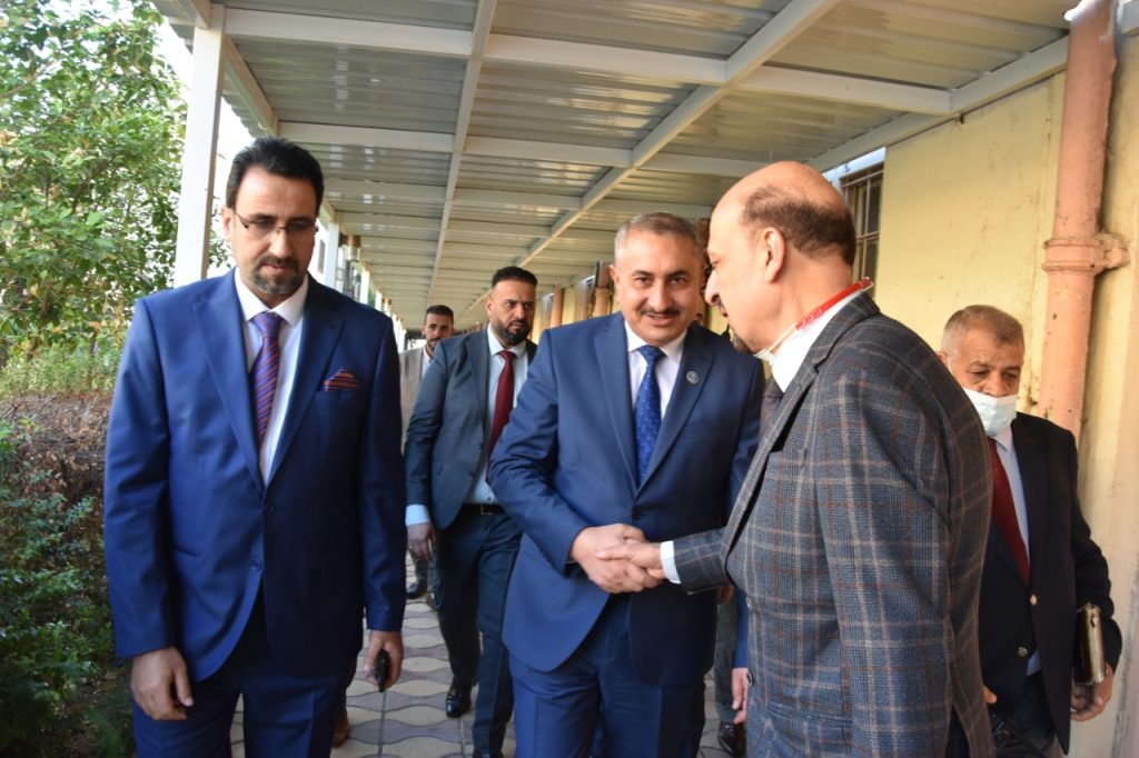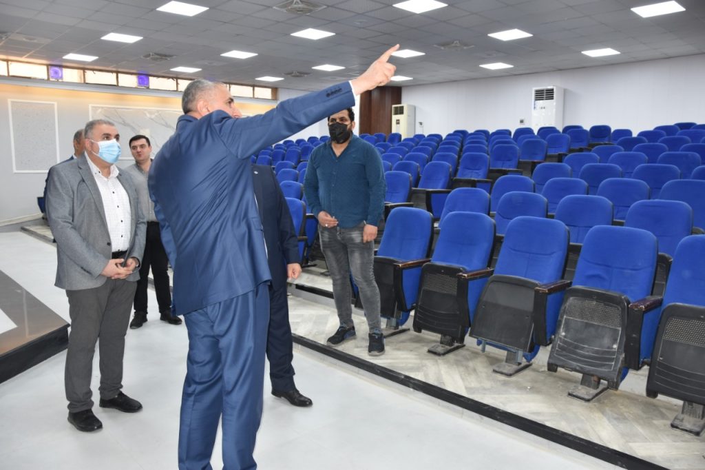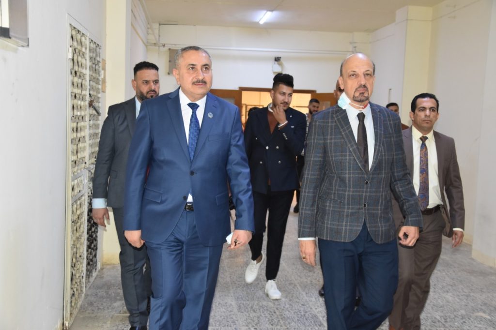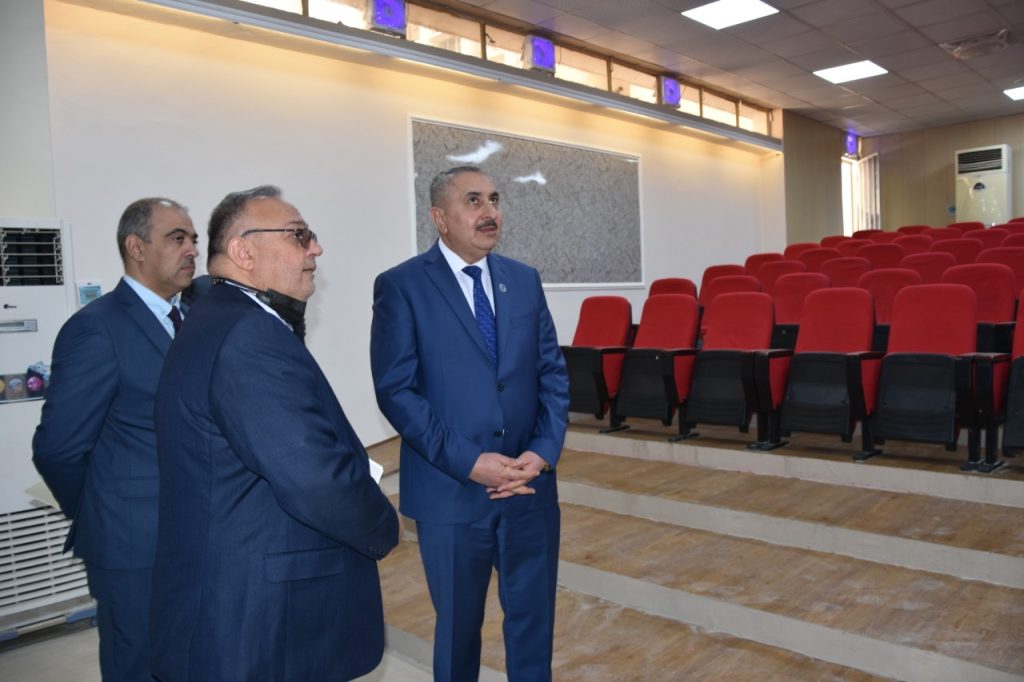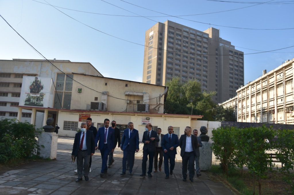 Prof. Dr. Munir Hamid al-Saadi, rector of the University of Baghdad has visited the colleges of medicine to follow-up the reconstruction campaigns undergoing there and was received by the dean of the college, Prof. Dr. Ali Kamel al-Shalji, where they inspected the halls, laboratories and other facilities to keep abreast of the projects under way. Dr. Munir al-Saadi stressed the need to exert all efforts to provide the appropriate study environment for our dear students which may reflect positively on their scientific and academic status through establishing integrated classrooms and labs equipped with the latest medical devices. In the same context, the rector visited the college of dentistry and was received by the dean of the college, Prof. Dr. Raghad Abdul Razzaq al-Hashimi who accompanied him in his tour and gave an overview about the accomplished projects related to the rehabilitation and maintenance of the college’s infrastructure in accordance with a set of prioritized quality standards.