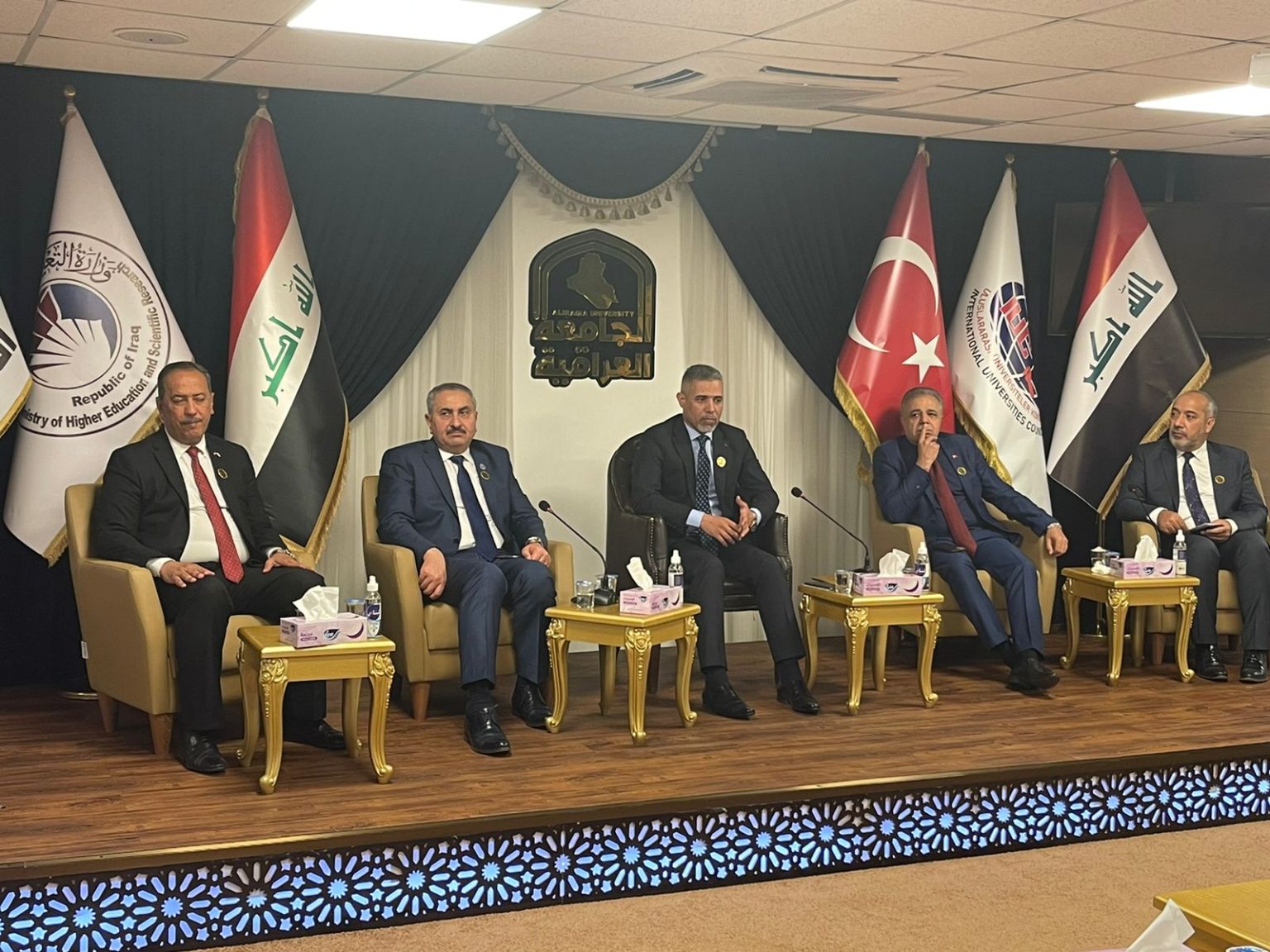 Prof. Dr. Munir Hamid al-Saadi, rector of the University of Baghdad has participated in the first cultural forum between the Iraqi and Turkish universities represented by the International Association of Universities held at Al-Iraqia University in the presence of the Deputy Minister of Higher Education and Scientific Research for Administrative Affairs Prof. Dr. Ali Hamid Kazim al-Shukri and the Director General of the Department of Missions and Cultural Relations Prof. Dr. HazIm Baqir Taher and the Turkish Ambassador to Iraq, Ali Riza Guney and a number of rectors of Iraqi universities and academic figures.