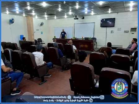 Assist. Prof. Dr. Farqad Abdul Jabbar Kazim, the Secretary of the council of the college of physical education and sports sciences gave a scientific lecture on (Training athletes in accordance with energy systems), in the presence of Prof. Dr. Mohammed Jawad Kazim, the professor of physiology. The lecturer discussed the most common procedures adopted for training athletes based on the phosphagenic system in the speed and explosive power sports, as well as the interpretation of the training of the anaerobic difference sample in the lactic anaerobic system, in addition to the mechanism of training via the oxygen antenna system in endurance sports. The students praised the kind of information they acquired through this lecture in terms of the use of modern training curricula in the preparation of athletes physiologically in light of the human energy systems.