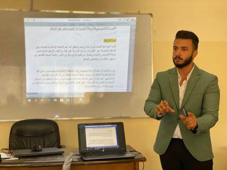 The department of radio and television journalism at the college of media held a lecture on electronic news sites and al-Jazeera Net as a model, in the presence of a number of master’s students, within a seminar chaired by Dr. Adel al-Ghurairi and which was delivered by the student Saqr Munther. The lecturer dealt with the most methods used in managing and disseminating news content on websites via some digital broadcasting services to cover breaking news and other events live and that should include certain elements of user enjoyment so as to provide information and entertainment.