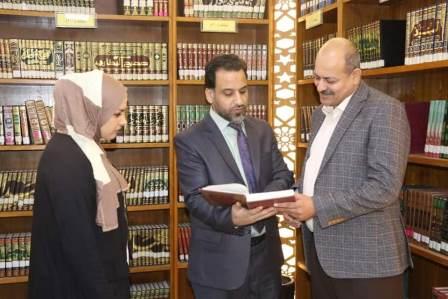 Assist. Prof. Dr. Ammar Basim Saleh, director of the cultural relations department at the college of Islamic sciences at the University of Baghdad has visited Imam Kadhim College Islamic Science University and met the Secretary of the Central Library there Dr. Jalal Salman. The two sides discussed ways of joint cooperation and exchange of experiences and agreed upon holding joint courses, seminars and workshops, and to activate cooperation with regard to undergraduate and postgraduate studies, as well as exchange visits to serve the scientific process in the two academic institutions. Dr. Ammar Basim also dedicated a series of publications of the College of Islamic Sciences to the Central Library of Imam Kadhim College Islamic Science University.