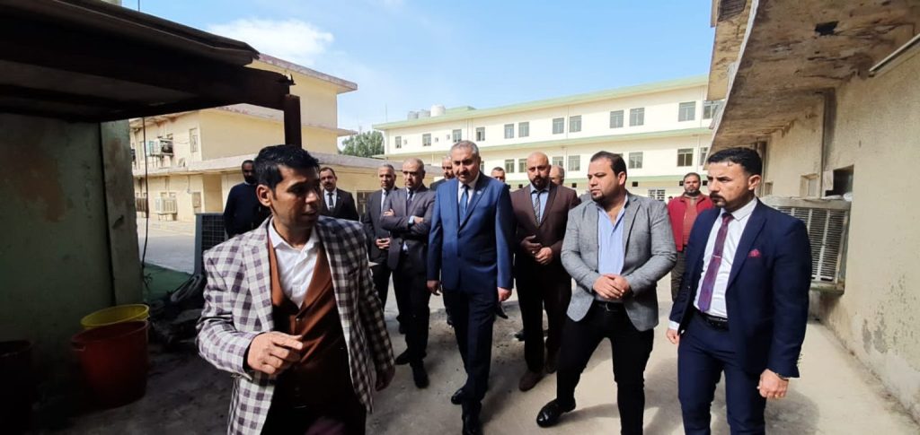 Prof. Dr. Munir Hamid al-Saadi, rector of the University of Baghdad, has opened up one of the new buildings of Al-Salam Student Housing Complex (No. 9), accompanied by the director of dormitories at the ministry of higher education and scientific research Dr. Hamid Shaker and the assistant rector for administrative affairs, Assist. Prof. Dr. Sarmad al-Ansari, as well as the director of dormitories at the University of Baghdad, Prof. Dr. Omar Faleh Hassan and other figures.
