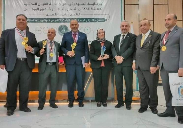 The aim of this event, that was held under the slogan “Scientific research is the bright face of Iraq”, in conjunction with the occasion of the Teacher’s Day and sponsored by the rector of Al-Ayen University, Prof. Dr. Shafiq Shaker Shafiq, is to encourage researchers and motivate them to increase their excellence and scientific competition so as to raise the level of scientific research outputs in Iraqi universities in quantity and quality, as well as to encourage publication in sober scientific journals to achieve more citations at the local, regional and international levels. Also the dean of the college of science Prof. Dr. Abdul Kareem al-Qazzaz and a number of professors of the University of Baghdad were honored in this academic and cultural event.