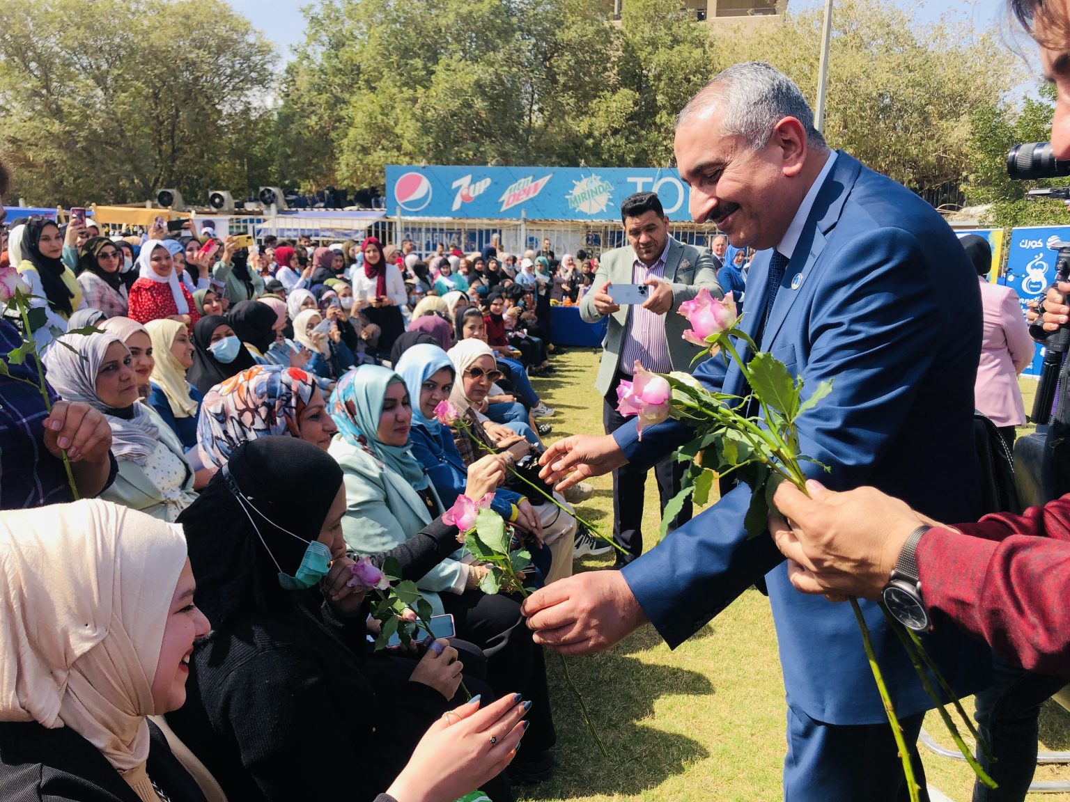 On this occasion, Dr. Munir al-Saadi dedicated flowers to a number of female professors, employees and students, wished them more excellence, also hinted to the role of some female public figures in Iraq whose biographies embodied bright success and ambition stories at the academic, cultural, entrepreneurship, arts and sports levels, as well as a review of successful small business projects at home made by female students. Also poems were recited regarding the leading role of women in various fields of life, in addition to the distribution of gifts and certificates of appreciation to some distinguished employees and students.