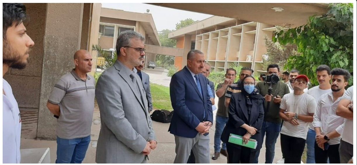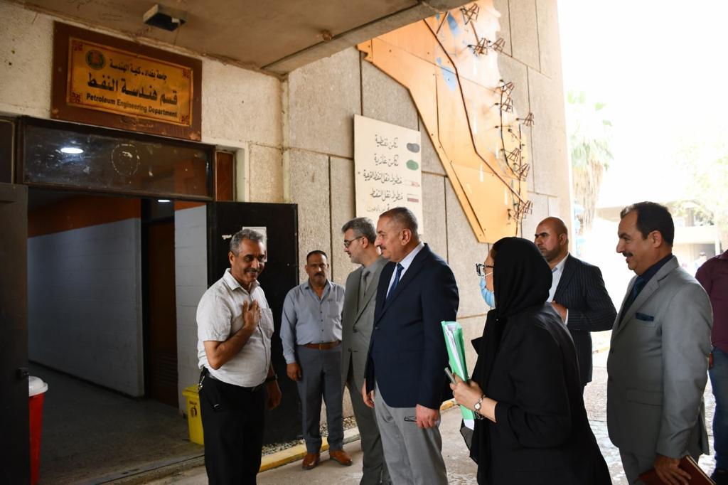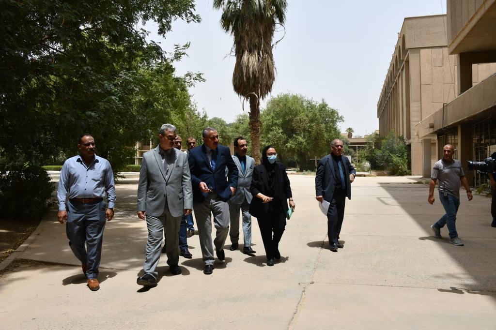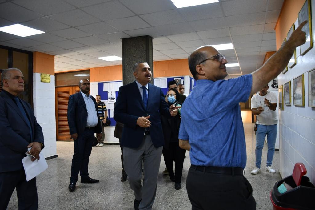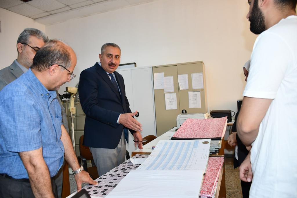Prof. Dr. Munir Hamid al-Saadi, the rector of the University of Baghdad, accompanied by his assistant for scientific affairs, the Assist. Prof. Dr. Marwan Abdul Hamid Ashour, have visited the college of engineering to keep abreast of all the necessary procedures made by the deanship and the examination committees in preparation for the final exams for undergraduate studies. The rector confirmed the need to commit to the ministry of higher education and scientific research related to the successful completion of final exams at the end of the current academic year (2021-2022), as well as scrutiny of all the essential steps in this regard in accordance with the applied regulations and instructions. At the conclusion of his visit, Prof. Dr. Munir al-Saadi met a number of students and listened to their problems during the study year, also thanked the dean of the college of engineering, Prof. Dr. Saba Jabbar Neima, for her good reception and administrative performance at all levels.