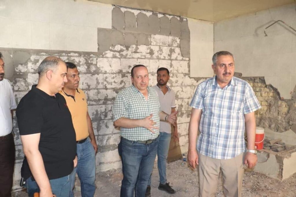 Prof. Dr. Munir Hamid al-Saadi, rector of the University of Baghdad, accompanied by his assistant administrative assistant, Prof. Dr. Sarmad Fouad al-Ansari, inspected the rehabilitation campaign taking place at al-Waziria Student Housing Complex in Baghdad. The rector was briefed on the details of current works and has directed to continuing the restoration process of halls and corridors of the housing complex that was neglected for years due to humidity and to transform it to a model residence place for our dear postgraduate students along with other buildings dedicated for the undergraduate students.