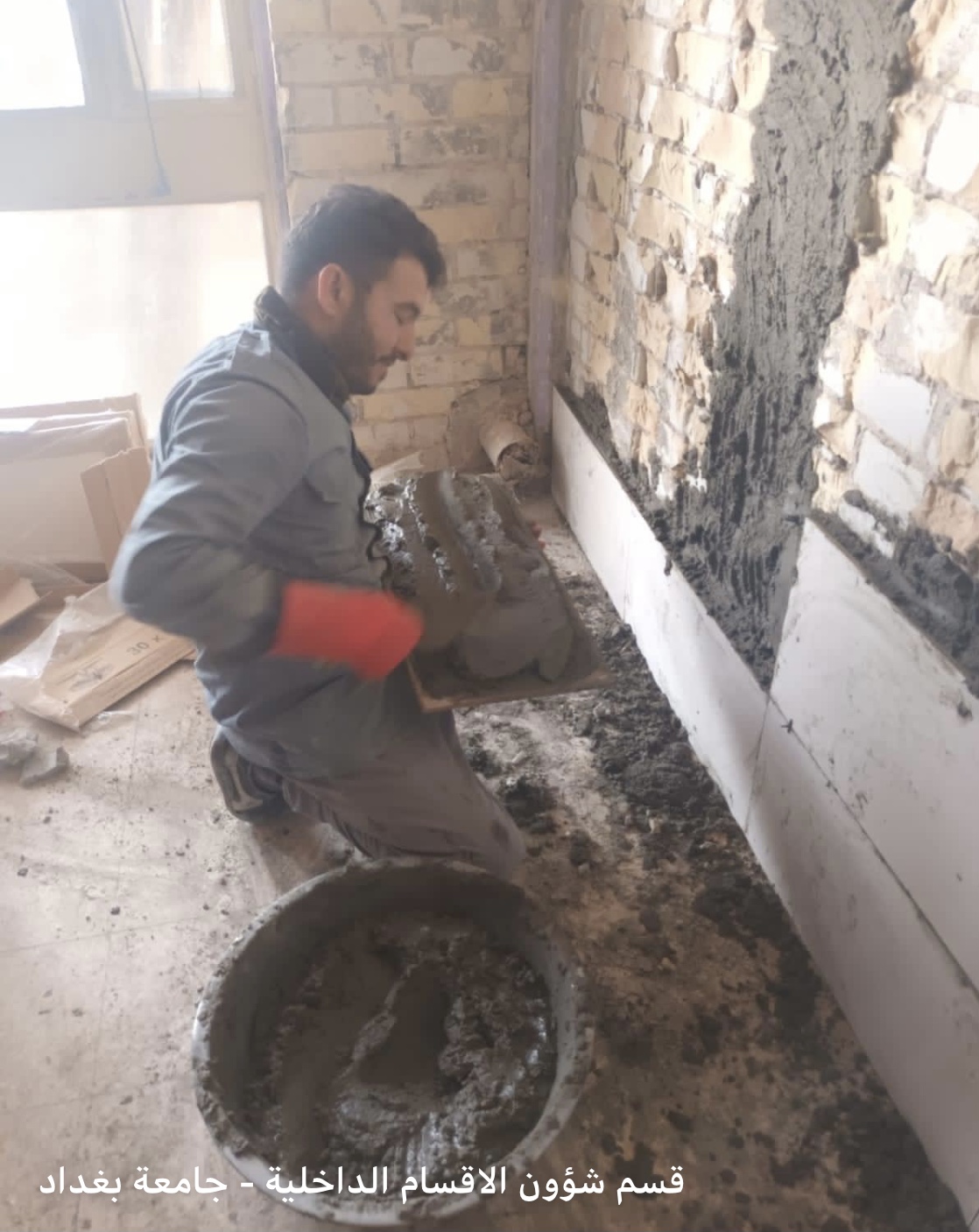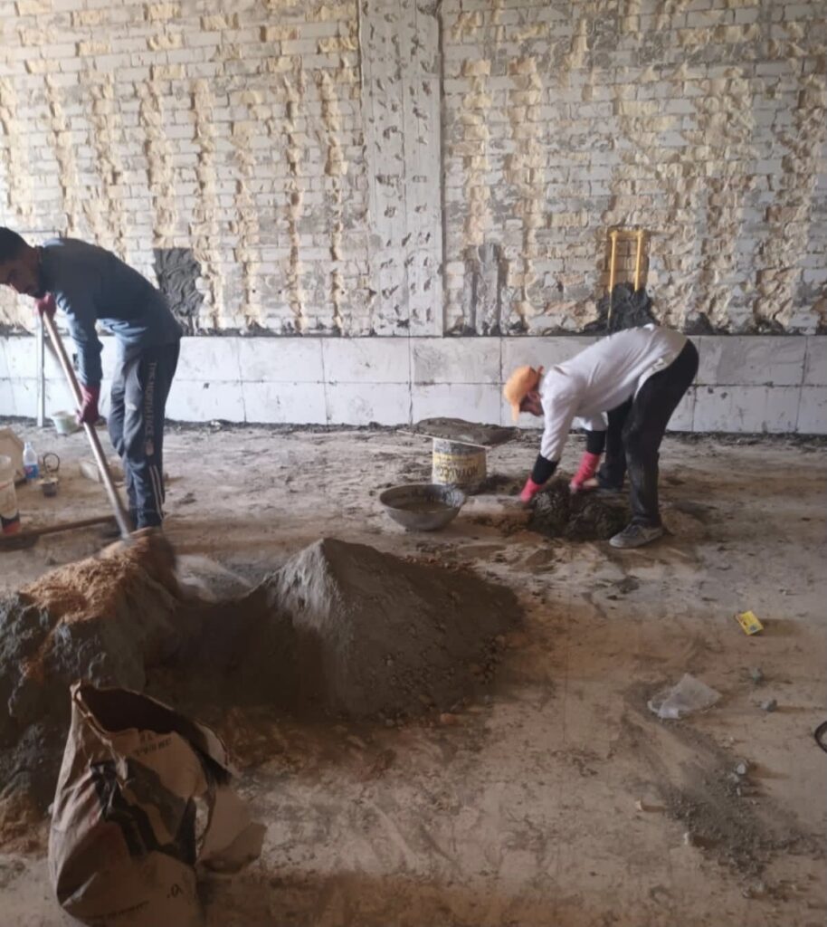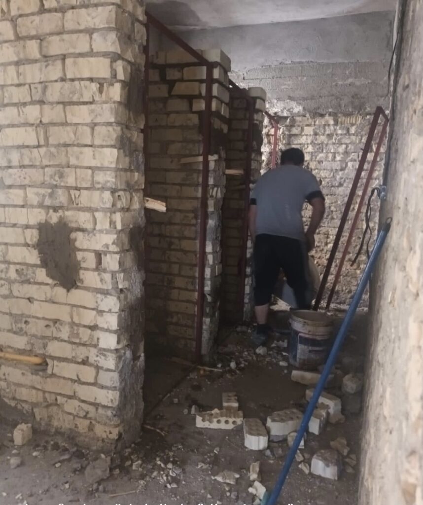 With the great efforts made by the Secretary of Al-Resala Housing Complex for Female Students in Bab Al-Moatham, Mrs. Duaa Sami, and under the supervision of the engineer Ayad Tariq Jaafar, the work continues with high vigor based upon the directives of the Implementation Committee formed to rehabilitate the corridors, halls and facilities of this housing complex at all levels. Mr. Ayad Tariq stated that the engineering and technical works would be completed before the start of the next academic year so as to restore the bedrooms and halls there that were affected totally due to neglect and mismanagement that is why the rector of the University of Baghdad has ordered to rehabilitate it appropriately to receive our dear students.