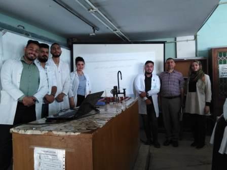The students of the fifth grade at the college of pharmacy have organized a panel discussion under the supervision of a group of professors of the Advanced Pharmaceutical Analysis Laboratory in the Pharmaceutical Chemistry Branch over 3 days. This event included the review of various topics of increasing or urgent social and humanitarian phenomena emerged in the Iraqi community such as drugs, e-cigarettes, community or family violence, traffic jams and others, as well as issues related to various contemporary scientific and medical topics such as hemorrhagic fever in order to shed light on the producers and exporters of materials involved in the synthesis of necessary raw materials in the pharmaceutical industry.