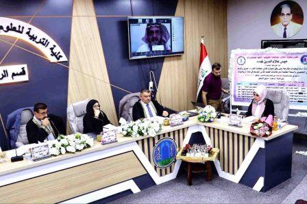 The college of education for pure and applied sciences (bn Al-Haitham) at the University of Baghdad has recently hosted online Prof. Dr. Mohammed Abdullah Othman from the King Saud University in Saudi Arabia via Zoom platform in the membership of the discussion committee of the doctoral student Mays Aladdin Ghanim from the department of mathematics. A thesis entitled (Three strategies proposed according to the model of strengthening the layers of cognitive perception and its impact on the achievement, capacity and mentality of students of the second intermediate grade in mathematics) was discussed during this session where the dean of the college and the supervisor of the student have expressed their thanks and appreciation for the good efforts made by Dr. Mohammed Abdullah in the session that reflected joint scientific cooperation between the two countries.