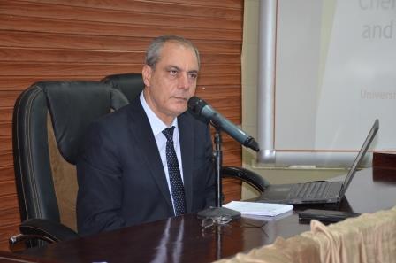 The lecture aimed to raise awareness of the importance of green chemistry and the threats that accompany the climate and the global change due to the excessive use of chemical and biological pollutants, factories and gases and how to deal with them which may in turn lead to pollution of the environment which is something that called on the countries to adopt safety methods in daily life. A lecture, delivered by Prof. Dr. Mahdi Mohammed Riza al-Sahlawi from the Faculty of Medicine at the University of Kufa and the consultant at the Ministry of Environment, addressed the most common standards applied for reducing chemicals of concern and providing the rationale behind these standards in order to make the manufacturing processes more safer, including minimizing or eliminating the use of key substances of concern in products through the strong management and detection of chemicals; assessing chemical risks to identify more alternatives.