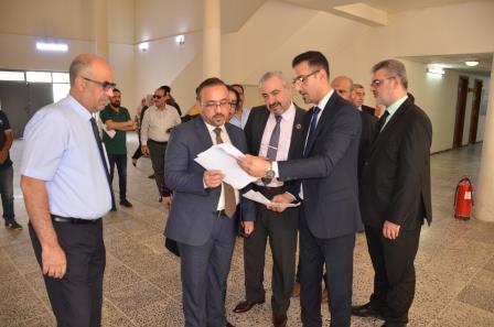 The ministerial team, represented by Dr. Faris Mahdi Alwan and Dr. Haider Hassan Meshali, paid a visit to the College of Science at the University of Baghdad, to follow-up the progress of the second phase examinations for undergraduate studies, accompanied by the assistant rector for scientific affairs, Prof. Dr. Marwan Abdul Hamid Ashour and the director of the Ibn Sina Center for E-Learning.