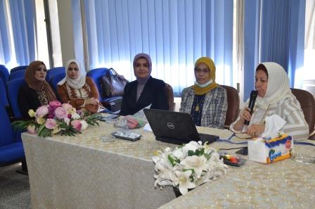 The symposium, which was presented by Prof. Dr. Najat Mohammed Rashid, Assist. Prof. Dr. Nada Mutair Abbas, Dr. Amal Abdul Hussein, and the lecturer Zeina Fadel Kazim, included the memorization of a number of Arab women who represent luminous symbols in the march of science and knowledge, especially in the field of pure & applied sciences, indicating that the difficulties and challenges have not been able to stop them, the lecturers shed light on the most important achievements and successes presented by Iraqi and Arab women in different fields and disciplines, while the lectures pointed to the importance of identifying the law of attraction to things and changing stereotypical thinking and the impact of positive energy and breaking the barriers that create negative energy and excessive thinking in a way that enhances women’s capabilities whether scientifically or culturally to prepare a generation able to achieve the goals that serve the Iraqi community.
