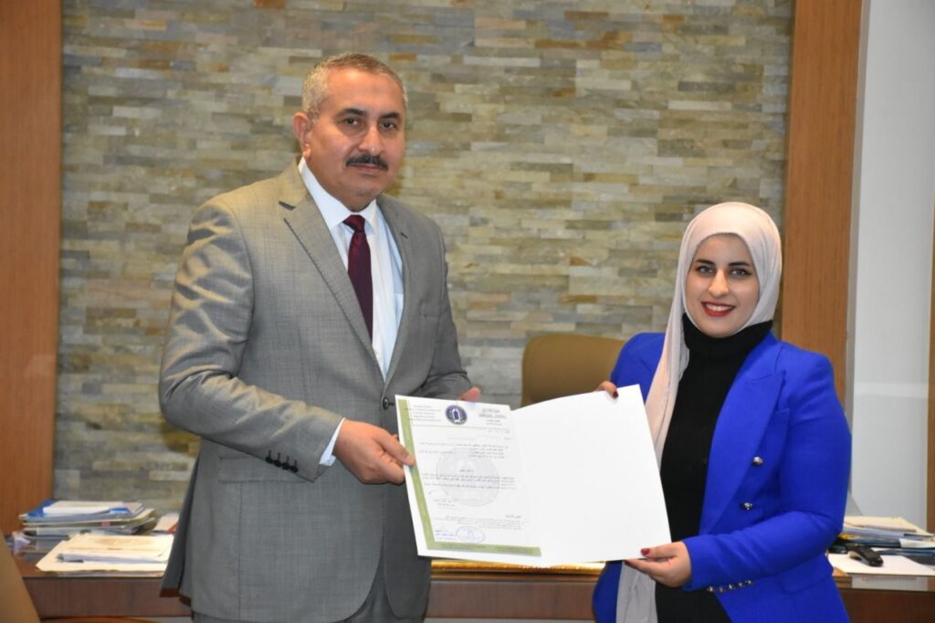 Prof. Dr. Munir Hamid Al-Saadi, the rector of the University of Baghdad, has recently with the team of the college of law that have participated in the Second Arab Virtual Moot Court Competition for International Humanitarian Law (IHL) for 2022, held in Amman. The rector has honored the members of the participating team with a letter of thanks and appreciation, in gratitude and acknowledgement of their efforts in raising the name of our university and the name of Iraq high in Arab and international forums. The competition included many rounds of advocacy in a virtual case before the International Criminal Court within the topics addressed in the international humanitarian law to train students on litigation (lawsuit) mechanisms, which contributes to refining and developing their legal skills within the framework of a professional experience.