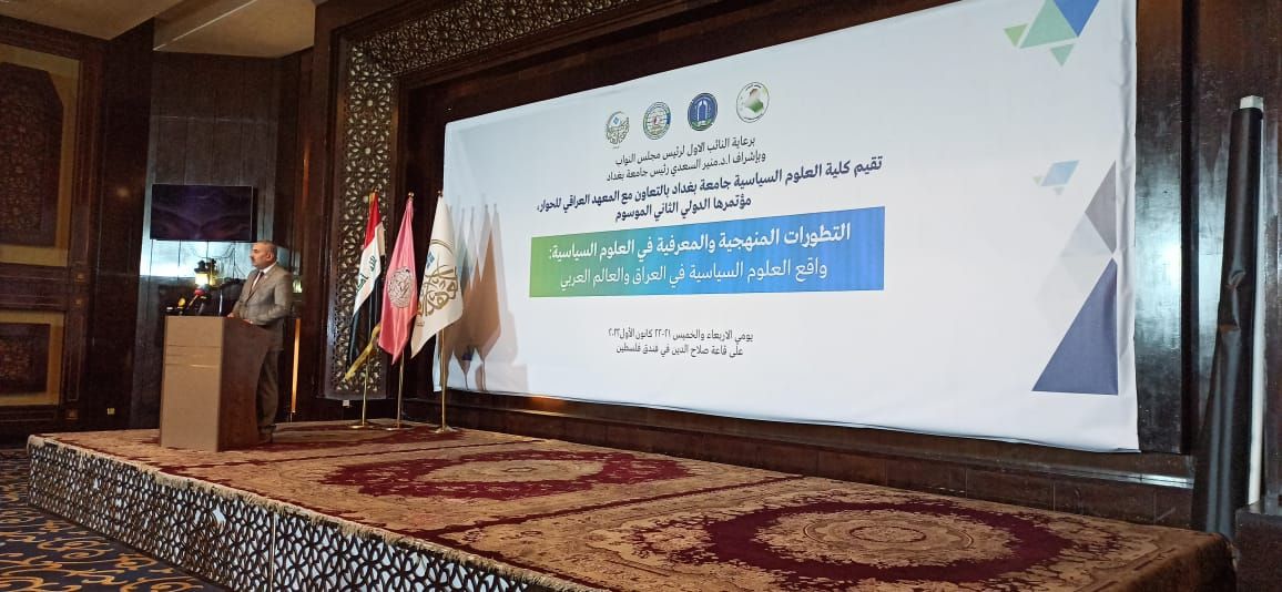 The College of Political Science at the University of Baghdad held its second international conference entitled (Methodological and cognitive developments in political science: the reality of political science in Iraq and the Arab world) under the auspices of the First Deputy Speaker of the Iraqi Parliament, Mr. Muhsen al-Mandalawi, and under the supervision of the rector of the University of Baghdad, Prof. Dr. Munir Hamid al-Saadi.
