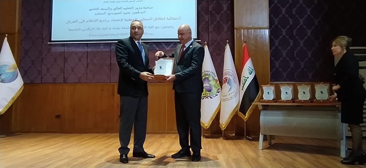 The College of Mass Communication at the University of Baghdad has recently hosted the launch ceremony of the national standards for the accreditation of media programs in Iraq which was held by the National Council for Accreditation of Media Colleges Programs, under the patronage of His Excellency the Minister of Higher Education and Scientific Research, Dr. Naim Al-Aboudi, in cooperation with the Bilad Alrafidain University College.