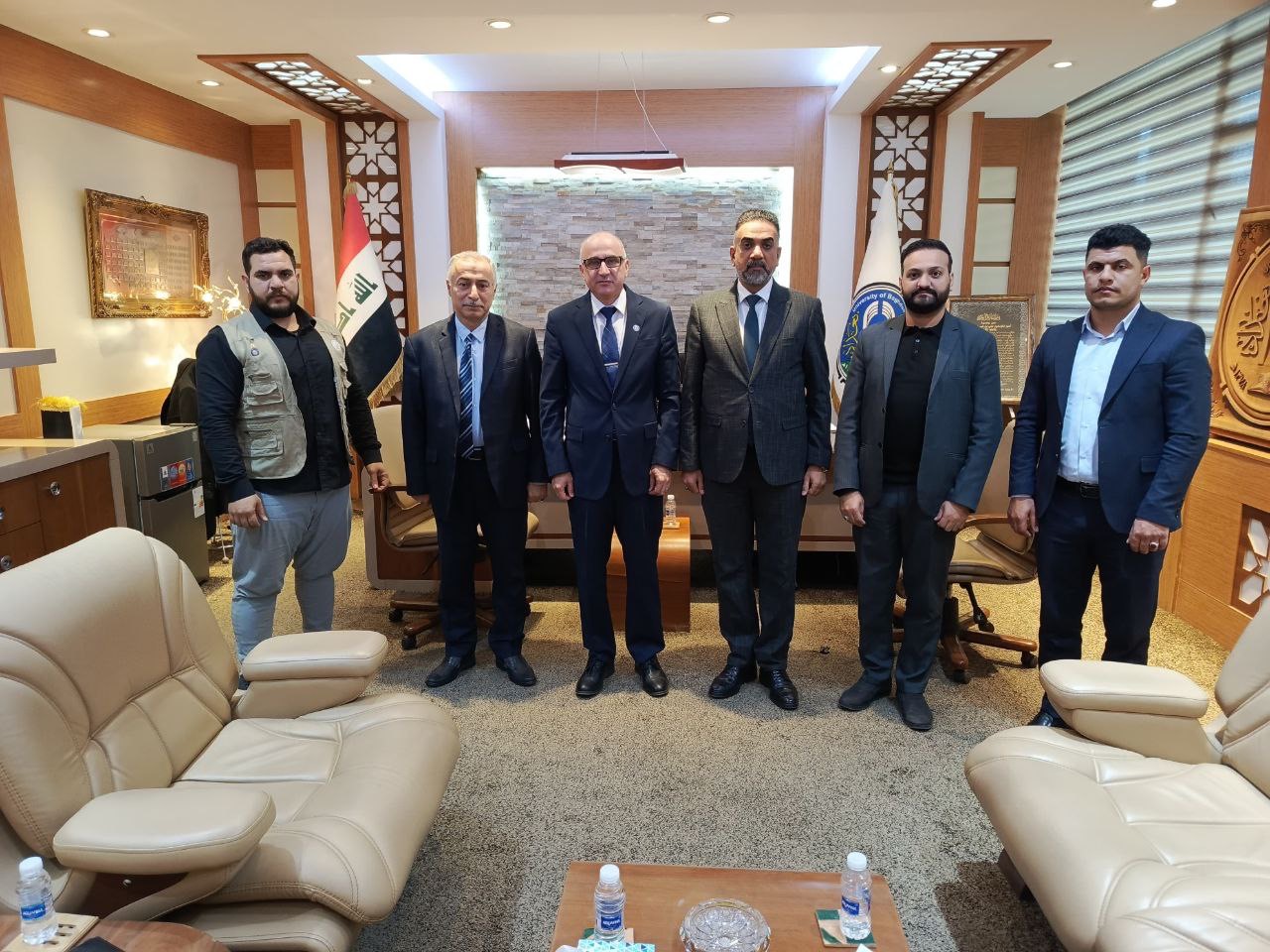 The President of the University of Baghdad, Prof. Dr. Bahaa Ibraheem Ansaf, and the Dean of the Center for Urban and Regional Planning for Graduate Studies, Prof. Dr. Karim Hassan Alwan, received the delegation of the Karbala Center for Studies and Research of the Holy Husseiniya Shrine, to discuss the latest developments in the preparations for the ninth international scientific conference to Ziyarat AL-Arbaee.
