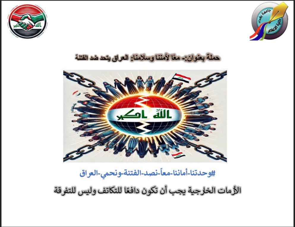 PhD students in the Department of Public Relations at the College of Mass Communication, University of Baghdad, launched an awareness campaign entitled “Together for Our Security and Peace… Iraq Unites Against Sedition”, supervised by Dr. Nahed Fadel.