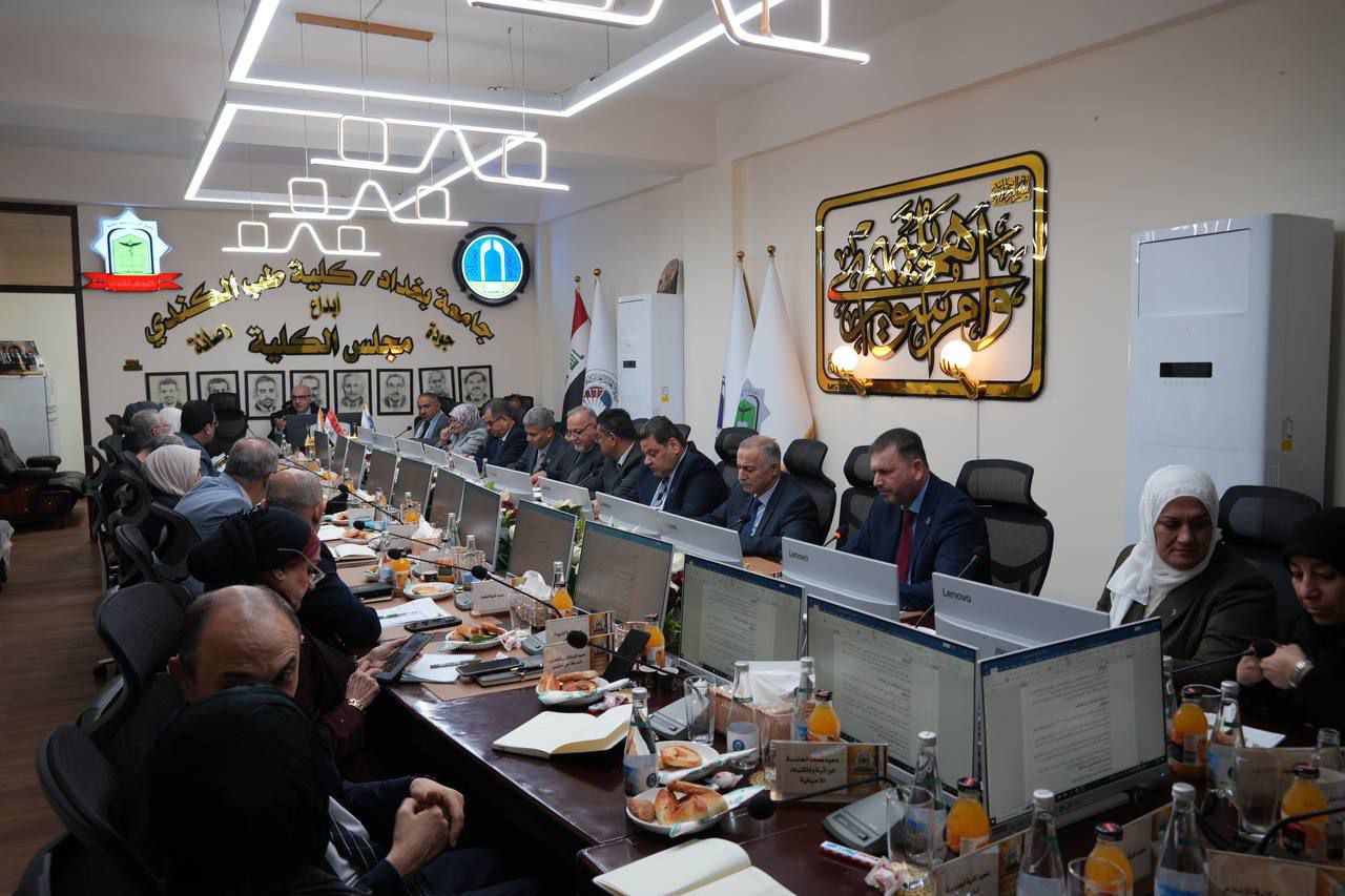 The University of Baghdad Council convened its eleventh regular session, chaired by Prof.Dr. Bahaa Ibraheem Ansaf, President of the University of Baghdad, and attended by several deans of colleges and institutes. The session resulted in the issuance of several important directives aimed at enhancing administrative and academic performance across the university’s institutions.