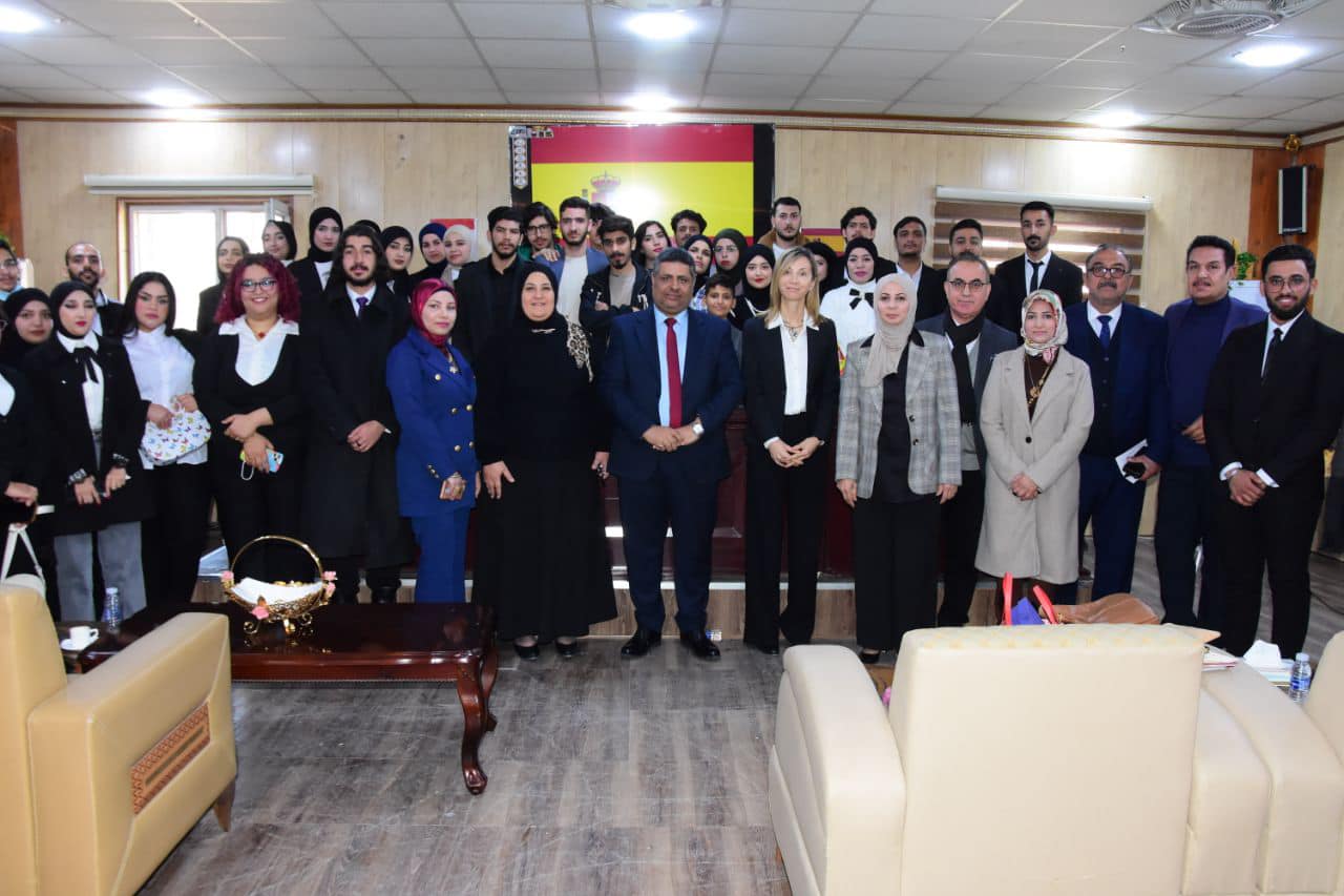 Prof. Dr. Ali Abdul Amir Sajit, Dean of the College of Arts at the University of Baghdad, received the Ambassador of the Kingdom of Spain, Mrs. Alicia Rico Pérez del Polcar, during her official visit to the college, which came with the aim of reviewing the progress of the Spanish language teaching process in the English Department.