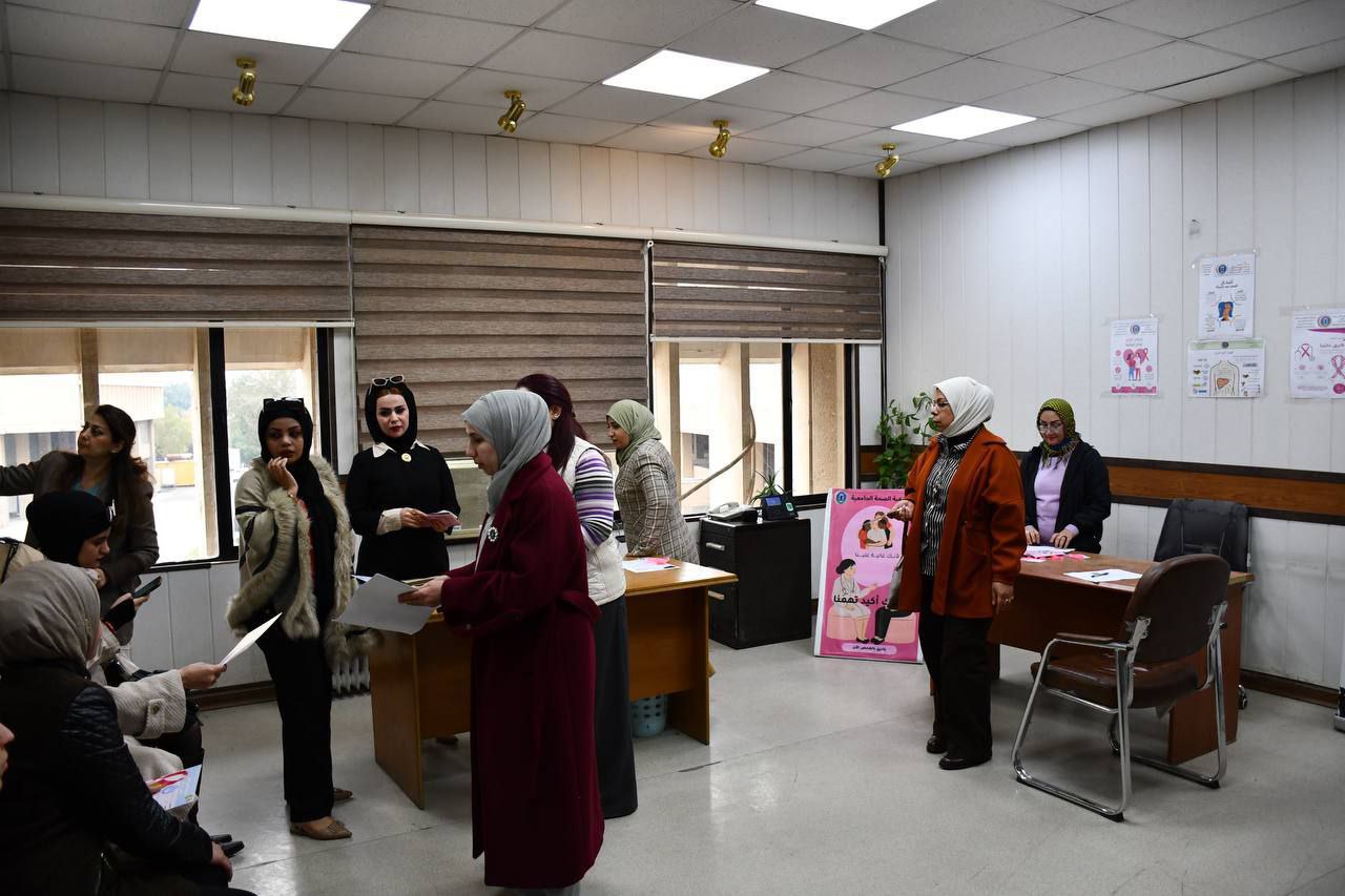 The University Health Division at the University of Baghdad, in cooperation with the Ministry of Health, organized an awareness campaign for the early detection of breast cancer, under the guidance of the Research and Development Department at the Ministry of Higher Education and Scientific Research, targeting a number of university employees and students.