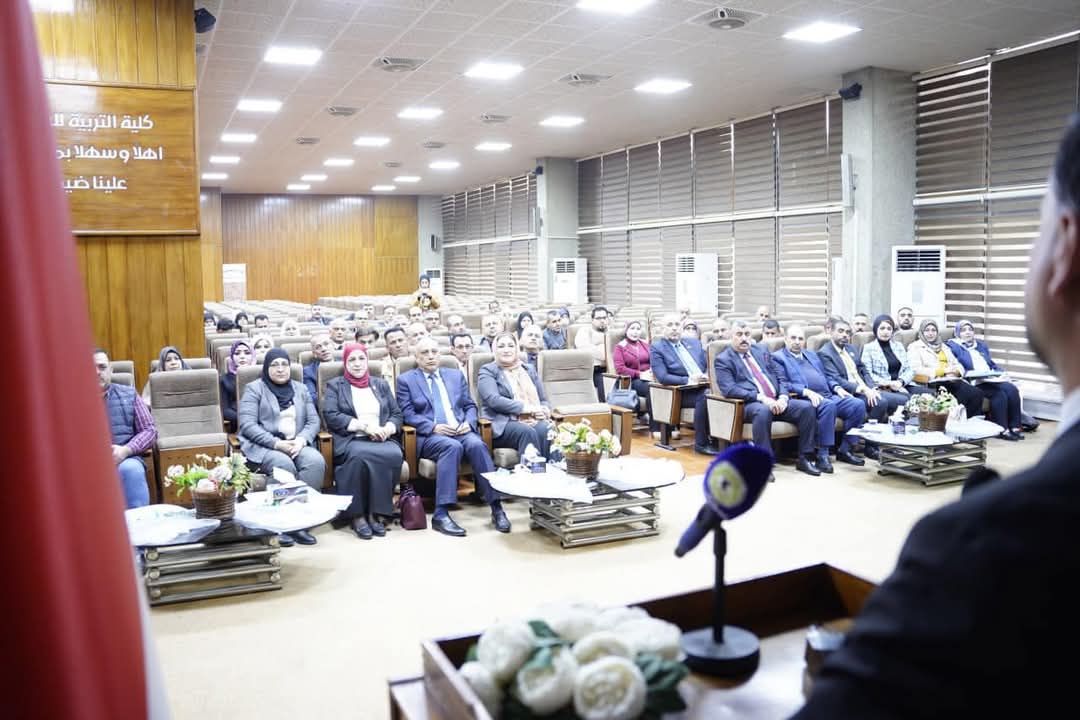 The College of Education for Women at the University of Baghdad hosted a special workshop to enhance the skill of the national evaluators team to evaluate the accreditation of the programs of the colleges of the educational group, in which Dr. Haider Hatem Faleh and a number of professors in the ministerial evaluation team lectured in the presence of the Dean of the College, Assistant Professor Dr. Ithmar Shaker Majeed Al-Shatri, the Director of the Accreditation Department in the Scientific Supervision and Evaluation Authority at the Ministry of Higher Education and Scientific Research, Dr. Yusra Muhammad Abdullah, and a number of deans of colleges of education.