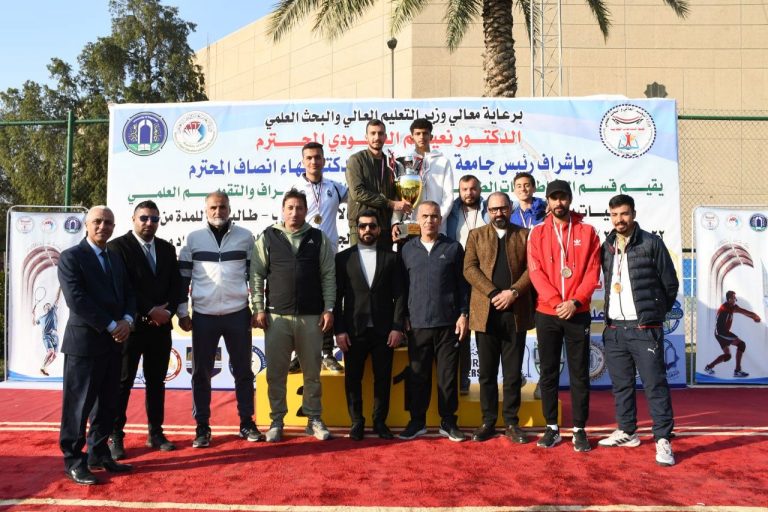 Both teams delivered an exhilarating and competitive match. The University of Baghdad team demonstrated exceptional performance throughout the tournament, securing first place and adding the trophy to the university’s impressive record of achievements. The players emphasized that their success was a result of hard work, determination, and a fighting spirit, which they identified as key ingredients for achieving their goals.