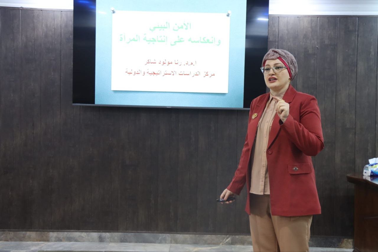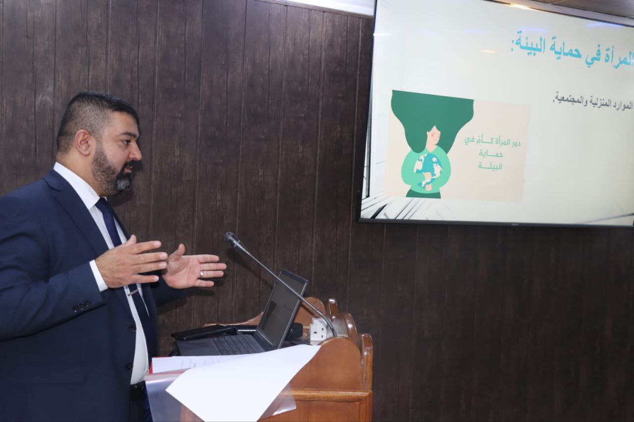 A distinguished group of Baghdad University scholars participated in the symposium, presenting a variety of research papers addressing topics such as environmental security and its impact on women’s productivity, women’s health within a sustainable environment as a responsibility and a lifestyle, green energy and women’s role between opportunities and challenges, the role of media in strengthening women’s environmental protection efforts, media strategies in addressing climate change, and women’s contribution to environmental awareness within society.