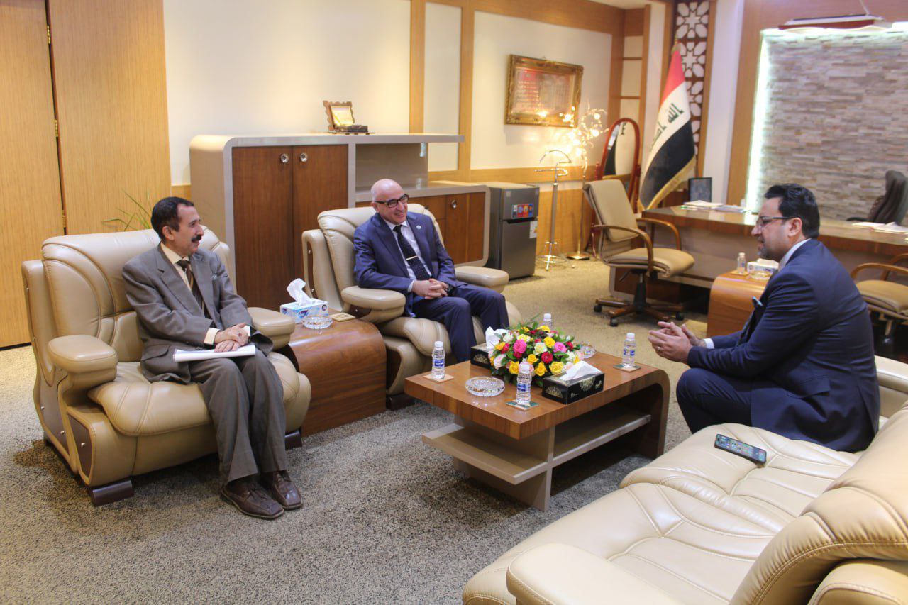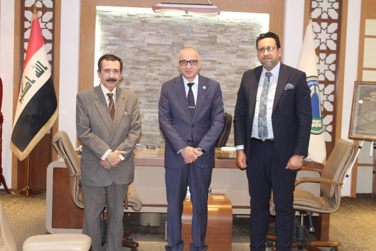 Professor Dr. Baha Ibraheem Ansaf, President of the University of Baghdad, received Dr. Nabil Ghazi Hashem, Professor of Forensic Medicine at the University’s College of Medicine, in his office today. The meeting was attended by the Dean of the College, Professor Dr. Amin Abdul Hassan Manea Al-Alwani, as part of ongoing efforts to support rare scientific expertise and promote specialized medical disciplines.