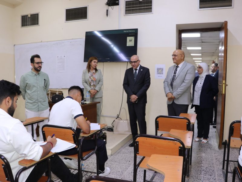 During the visit, he inspected the examination halls and observed the organizational procedures in place, commending the discipline and commitment of the students, as well as the great efforts exerted by the college administration, faculty members, and administrative staff in establishing an exam-friendly environment that enhances academic performance.