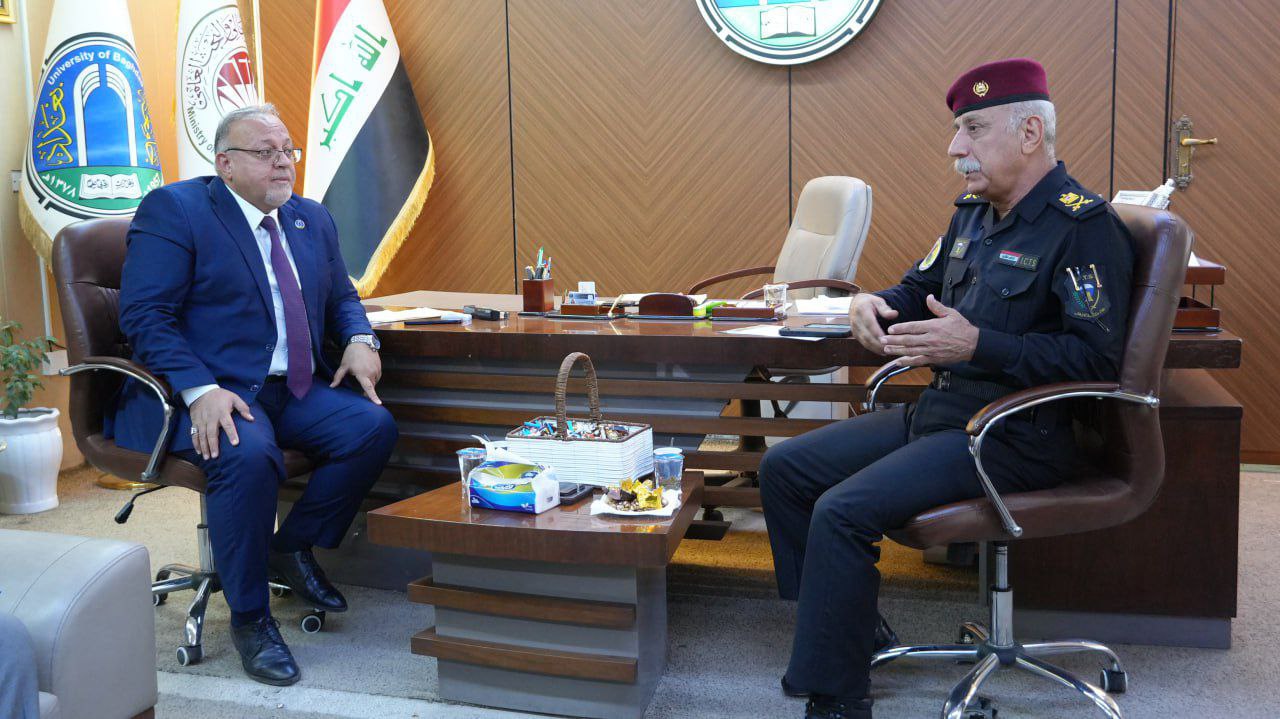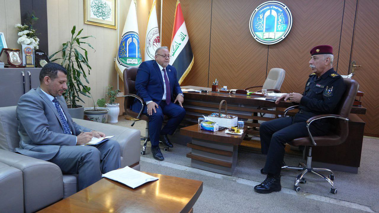Professor Dr. Raghad Abdul Razzaq Al-Hashemi, Assistant President of Baghdad University for Administrative Affairs, met with Major General Jassim Yahya Al-Zubaidi, representative of the Prime Minister’s Office, to discuss the mechanism for supporting the university’s infrastructure development project as part of the government’s strategic national initiatives.