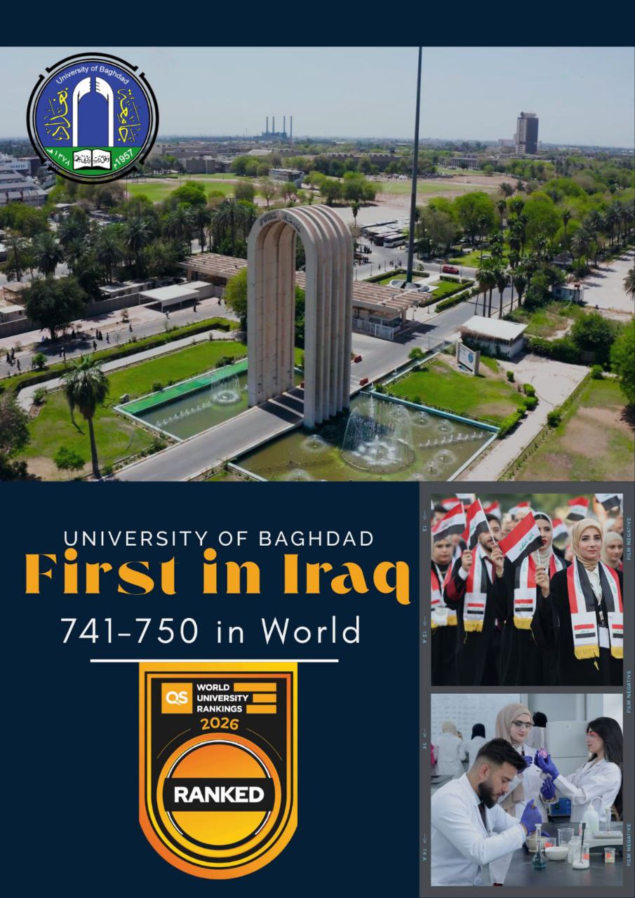 The University of Baghdad has marked a significant achievement by securing a spot in the 741–750 global bracket of the QS World University Rankings 2026. This reflects a leap of more than 100 positions from its 2025 ranking of 801–850, reinforcing its leadership in Iraq and maintaining its top position among the participating Iraqi universities.