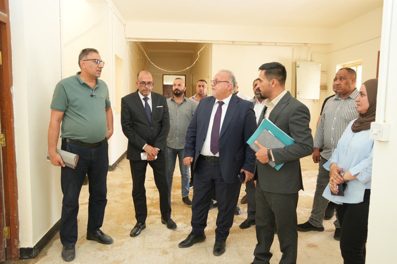 The delegation was headed by Prof.Dr. Raghad Abdul Razzaq Al-Hashemi, Vice President for Administrative Affairs, who conducted an on-site inspection of the college and the infrastructure in need of rehabilitation to ensure a proper academic environment for the college’s return to its original location.
