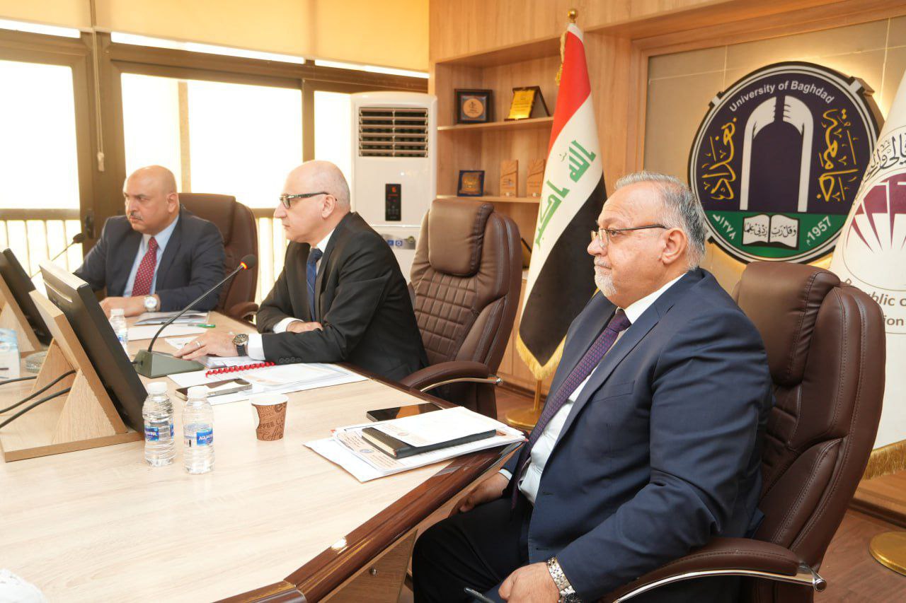 The University of Baghdad held its twenty-fifth open session under the chairmanship of Prof.Dr. Bahaa Ibraheem Ansaf, President of the University, with the attendance of deans and council members, to discuss several vital academic and administrative issues affecting institutional performance and the development of university work.