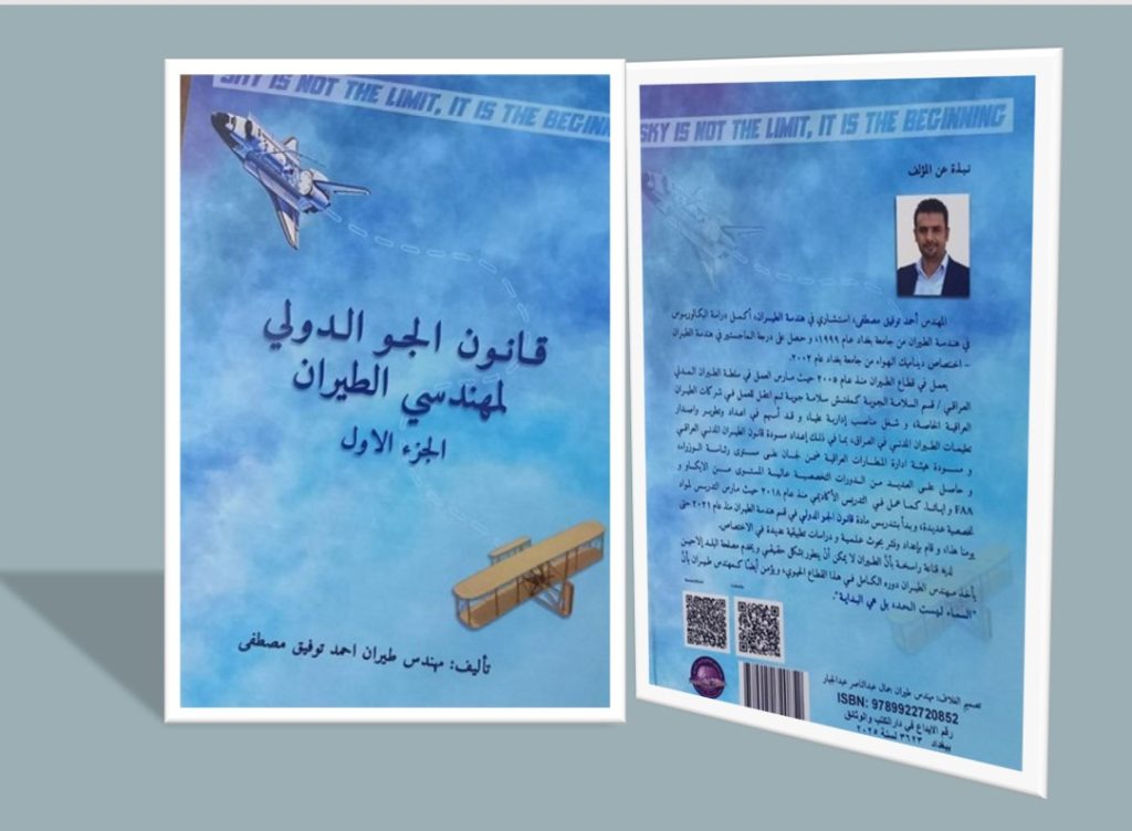 A new book titled “International Air Law for Aeronautical Engineers” has been published by Assistant Lecturer Ahmed Tawfiq Mustafa, a faculty member in the Department of Aeronautical Engineering at the College of Engineering – University of Baghdad. The book was released by Al-Dar Al-Jamia Publishing House in 2025 as part of efforts to support academic advancement and promote scientific output.