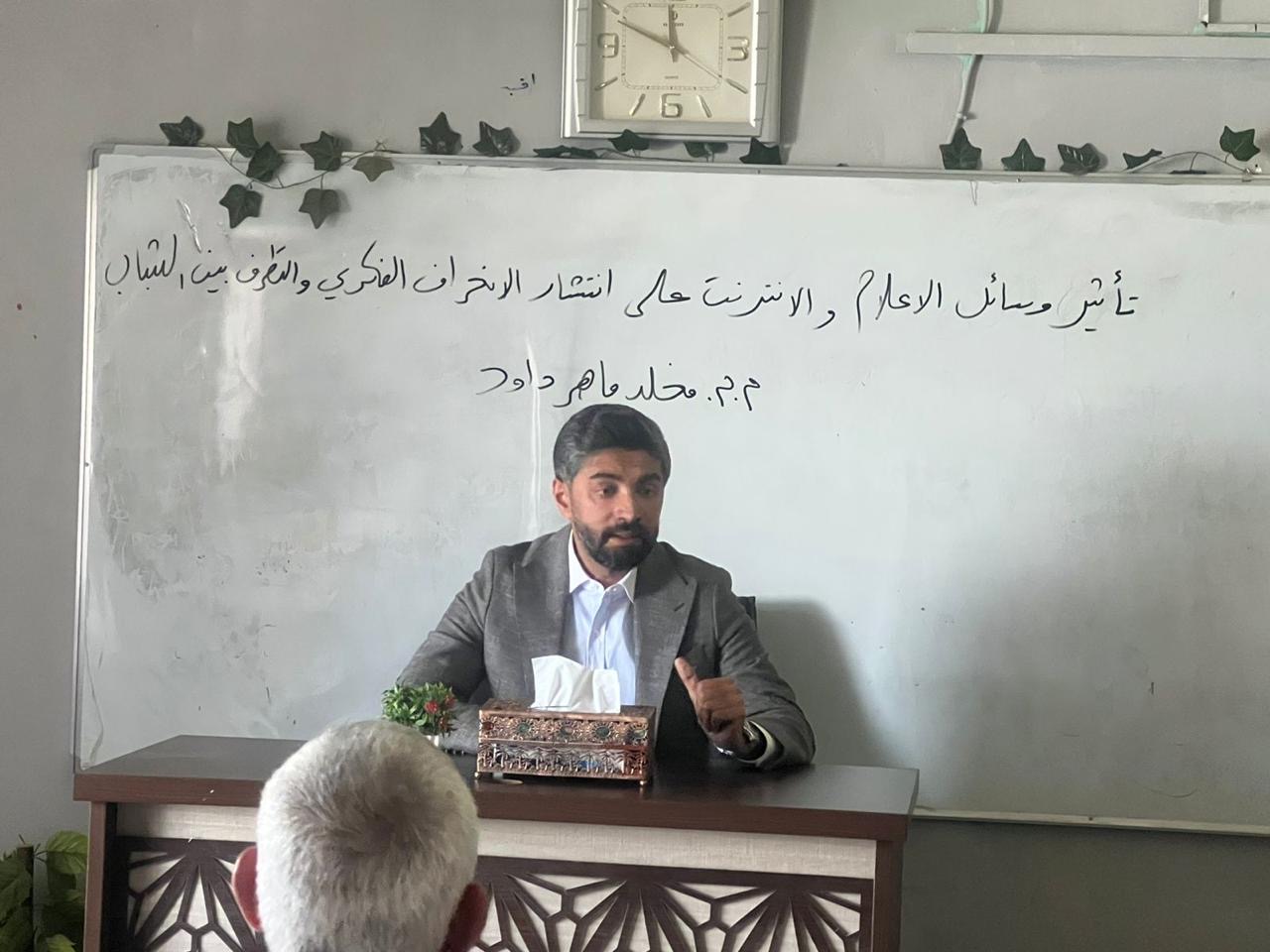 The College of Islamic Sciences at the University of Baghdad organized a workshop titled “The Impact of Media in Spreading Ideological Deviation and Extremism Among Youth,” presented by Assistant Lecturer Mukhlid Maher Dawood.