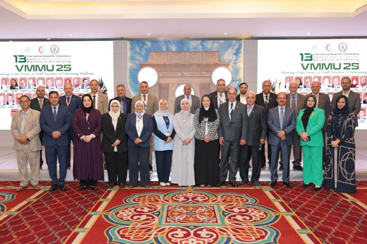 The College of Veterinary Medicine at the University of Baghdad took part in the proceedings of the 13th International Scientific Conference organized by the College of Veterinary Medicine at Mansoura University, held under the theme “Advancing Veterinary Medicine through Artificial Intelligence: Emerging Trends and Future Opportunities.”