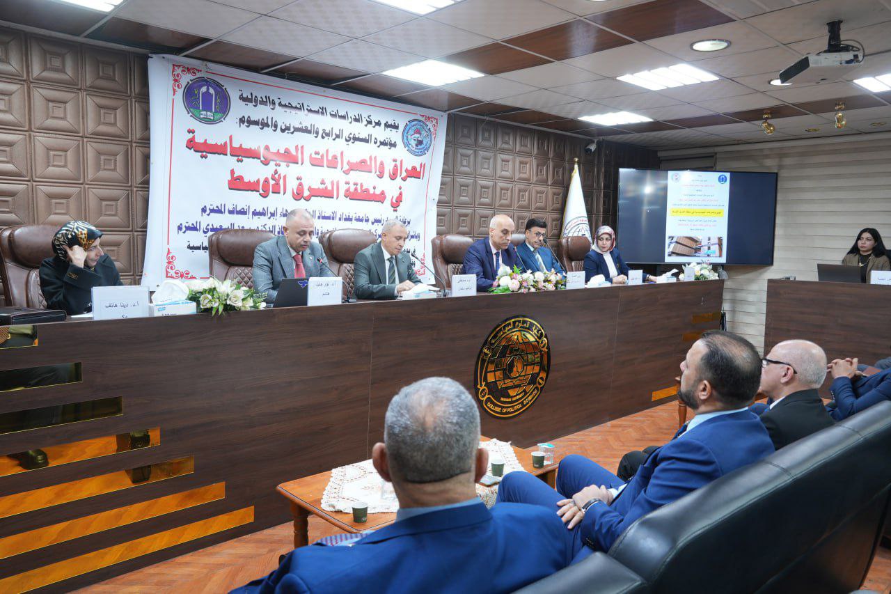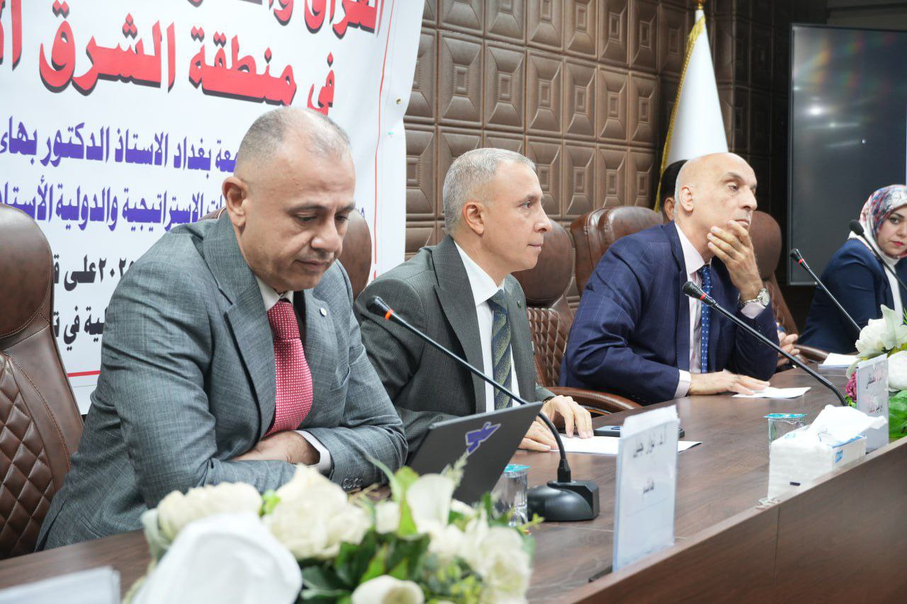 The Center for Strategic and International Studies at the University of Baghdad convened its twenty-fourth annual conference under the theme “Iraq and Geopolitical Conflicts in the Middle East.” The event was attended by the President of the University of Baghdad, Professor Dr. Bahaa Ibraheem Ansaf, supervised by the Director of the Center, Professor Dr. Adel Badiwi, and featured the participation of a distinguished group of researchers and academics from various Iraqi universities.